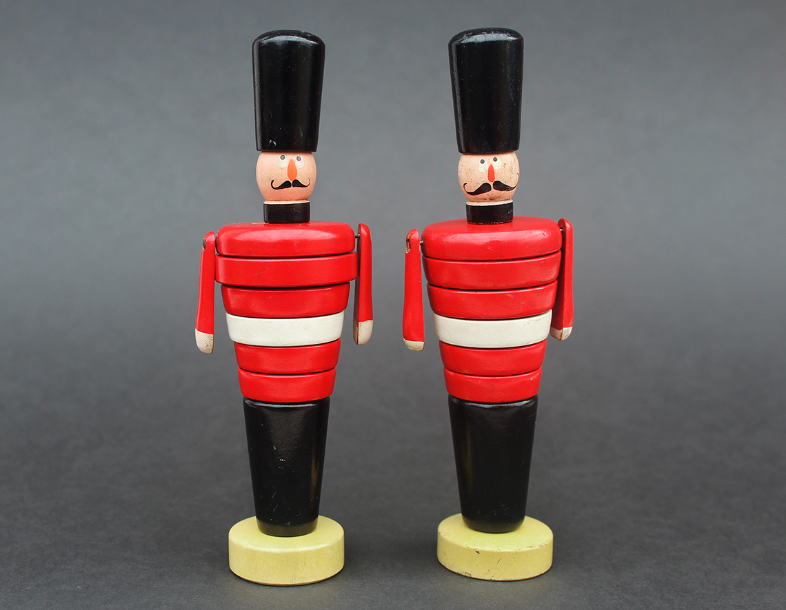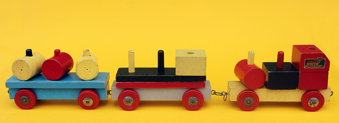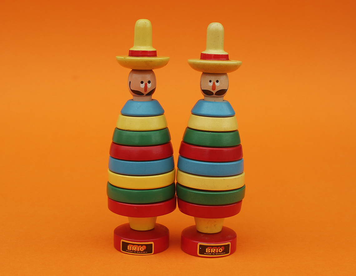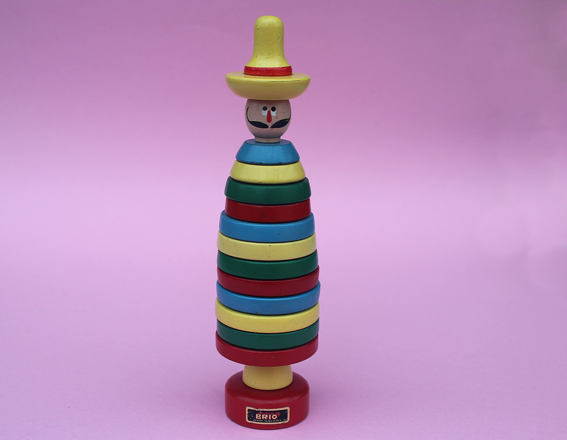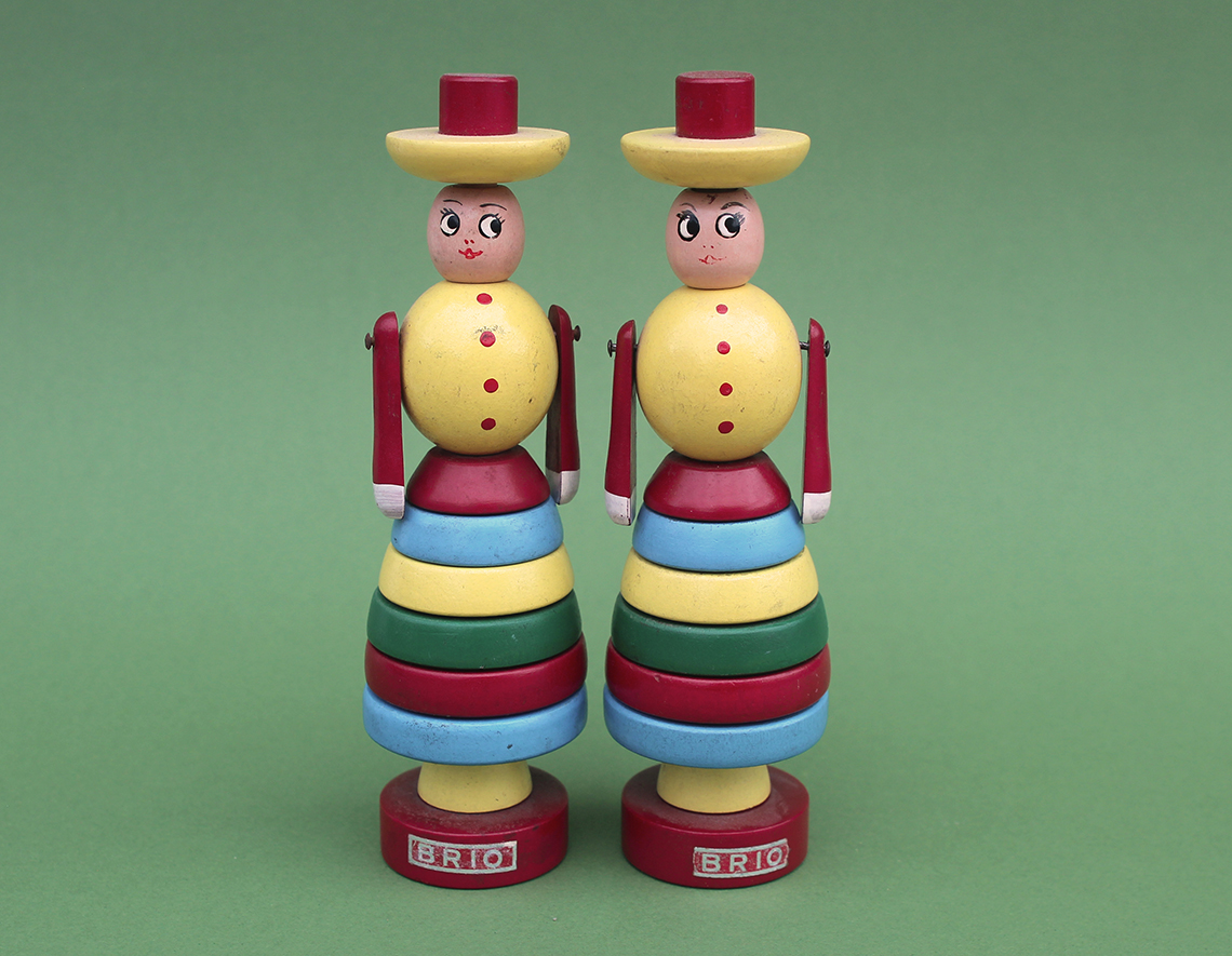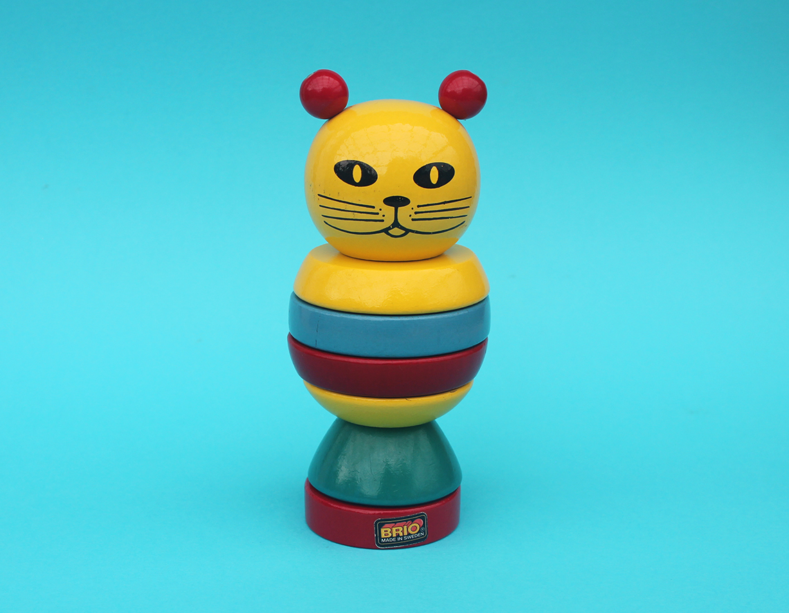 Brio Toys were originally founded in 1884 by Ivar Bengtsson in Osby, Sweden. In 1908 Ivar’s three sons took over the company over and gave it the name “BRIO”, which is an acronym for the brothers (BR), Ivar (I) Osby (O), and it’s around this time that the first BRIO Toys were introduced. The BRIO toys in the collection here relate to their range of stacking toys, or ring toys as they are sometimes known. It’s fascinating to see how long each of the toys were in production for and this is often reflected in how difficult they are to find, or as the case may be, to afford.