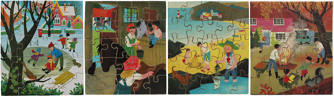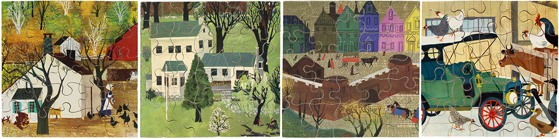 Picture Book Puzzles - Farm House, Country House, Old Town and Vintage Car 8" x 8"