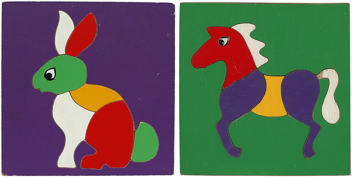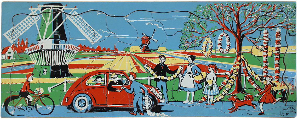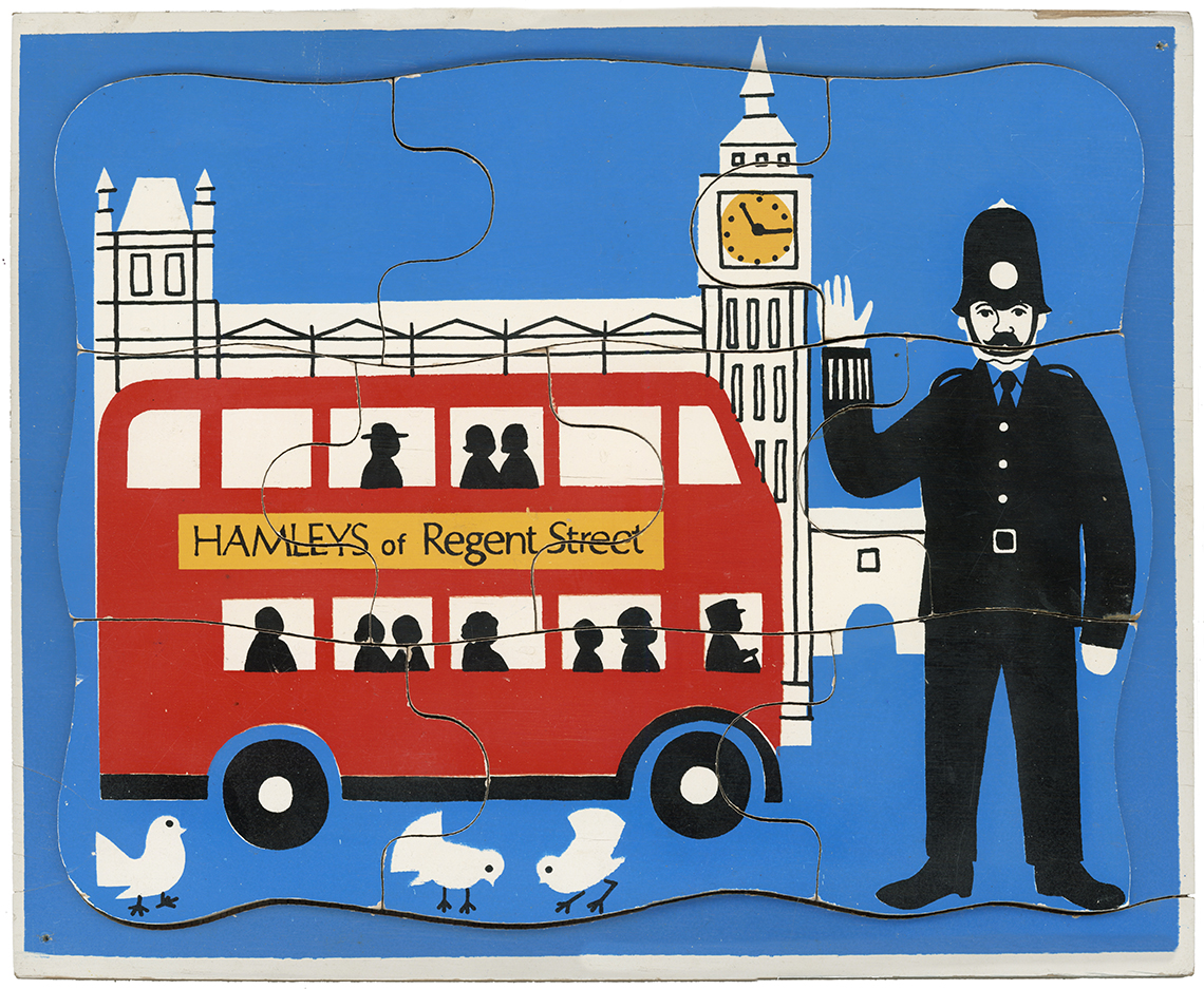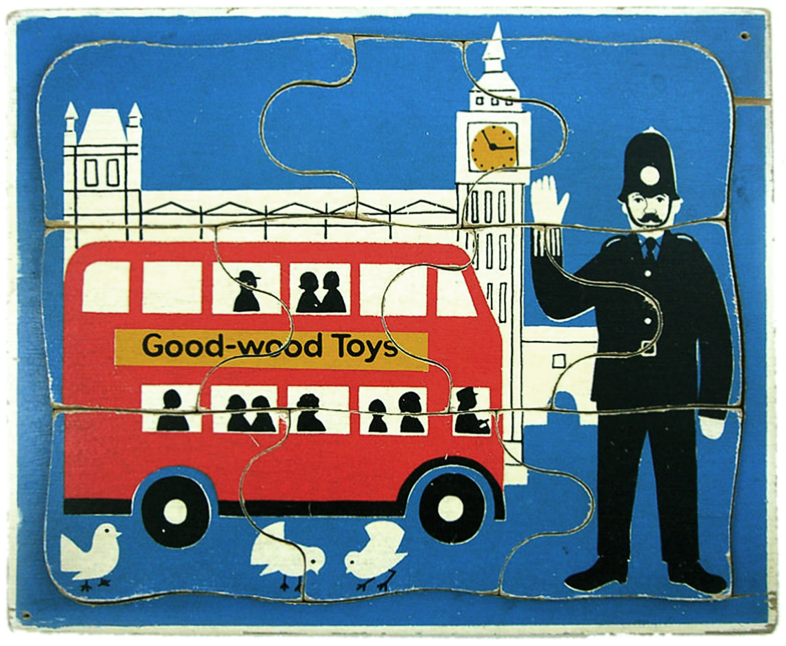 W.R Kelly began making children’s jigsaws in London 1949, before moving to Luton and then onto Stonham Aspall in Suffolk. Upon his retirement in 1978, Mr Kelly sold the business to Willis Toys. Both W.R.Kelly and Willis Toys have links to the Abbatt Toys company and recall having produced puzzles on their behalf. The history of W.R.Kelly however is sparse and with almost half a century having passed since they produced puzzles the history of the company exists only in the puzzles that remain in circulation. The majority of the W.R. Kelly puzzles in the collection are of small size (7 inches square) and whilst this was a very popular size for a child’s puzzle and formed product lines for Abbatt Toys, Tiger Toys and Galt Toys amongst others, the puzzles in this size produced under the name W.R.Kelly are all distinguishable by their use of the colour purple which is seen in each of the designs.