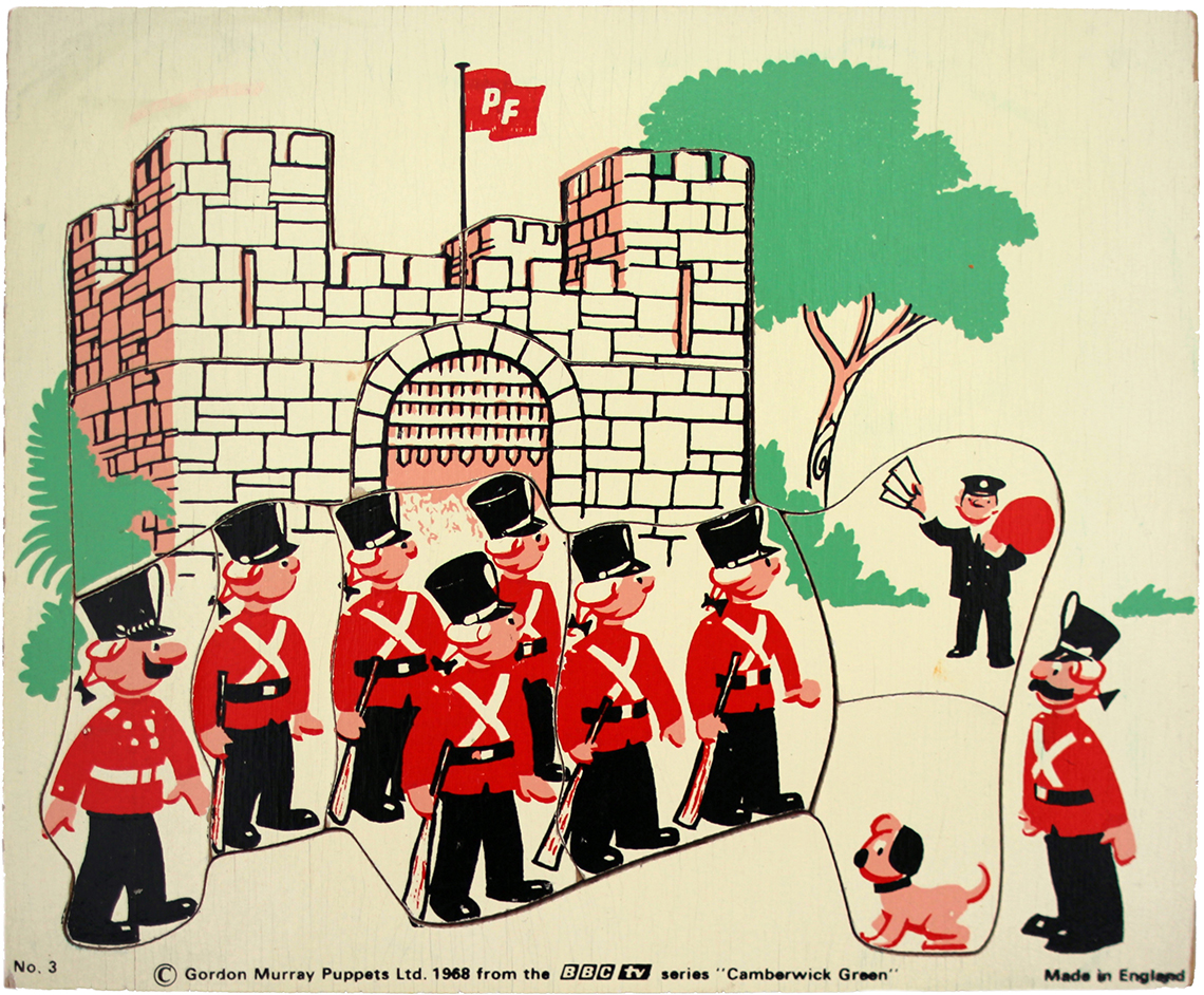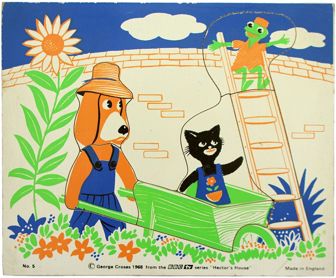 The following puzzles are all taken from popular 1960’s children’s TV shows; Joe, Camberwick Green and Hector’s House and marks a time when TV started to influence children’s toys and instead of relying upon the storytelling ability of parents, such as was the requirement in the Kiddicraft Story Puzzles, the storylines of the puzzles were taken from episodes that children may have seen on their television screens. They are a delightful set of puzzles though and evoke strong childhood memories of any adult that watched these programmes in childhood.