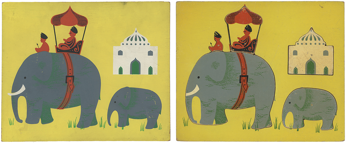Indian Elephants original painted proof and Jigsaw 9" x 7" Unknown Company or Designer