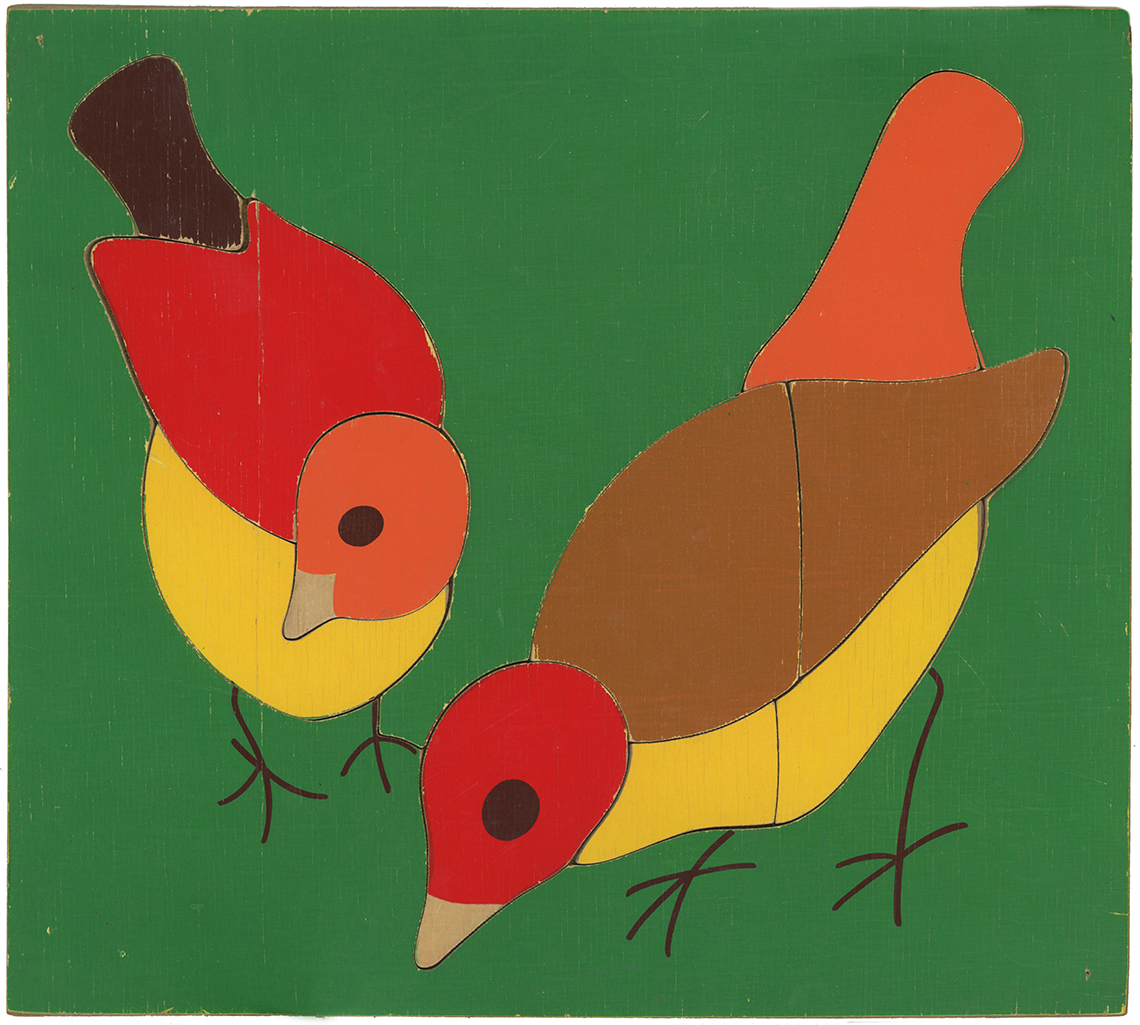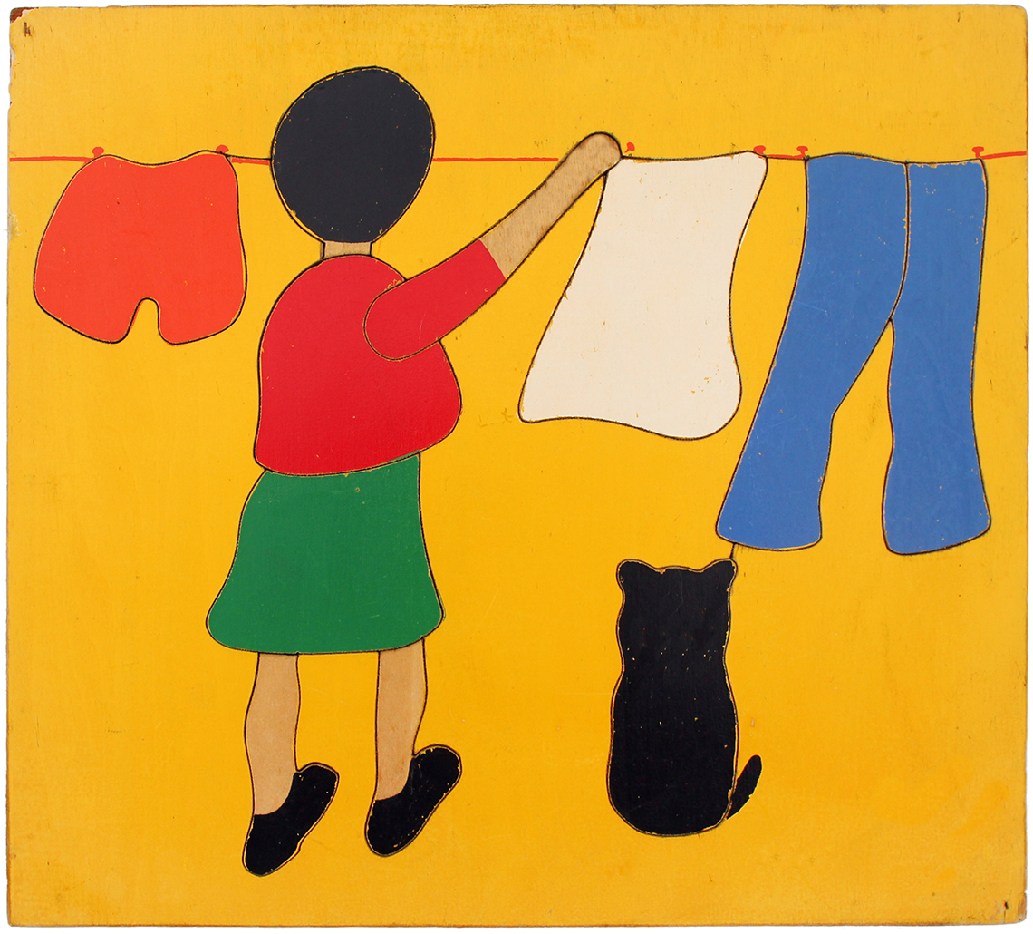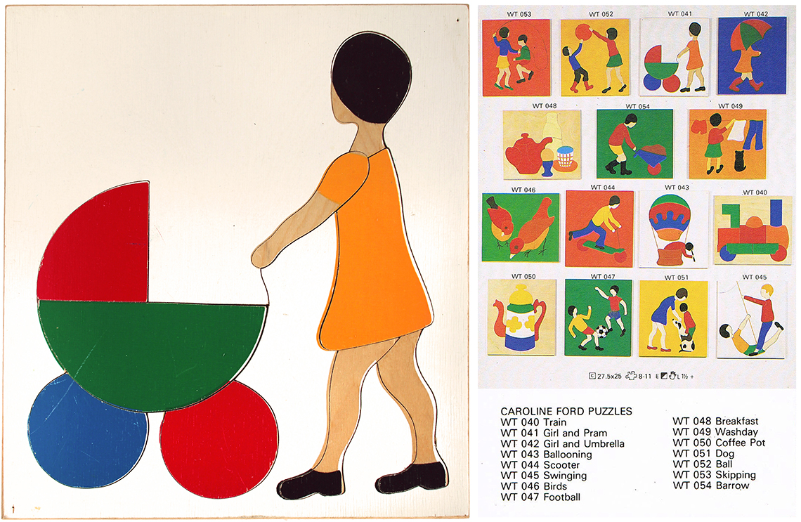 Willis Toys Ltd is a British Toy Company which has been trading for over 50 years and continues to trade in wooden jigsaws to this day. Unsurprisingly the puzzles in the collection however are no longer part of their output and were likely discontinued sometime in the late 1960’s/early 70’s. The set of puzzles that follows are all designed by Caroline Ford who also produced designs for Abbatt Toys, and previously was designing puzzles in the 60’s for W.R. Kelly prior to them becoming Willis Toys, and are all exceptionally hard to find, primarily on account of the absence of any long lasting branding on the puzzles and also as a result of scarcity. The Willis Toys branding on these puzzles was simply a paper sticker on the back of the puzzles, I can vouch for the fact that many of these labels came adrift and it’s often no longer possible for sellers of these puzzles to be able to identify the brand, as a consequence if these puzzles are listed for sale they are usually in the category of ‘vintage puzzle’ which is a fairly broad starting point for any search for them! This set is almost complete after two decades of searching, with just two puzzles left to find; the coffee pot and the scooter.